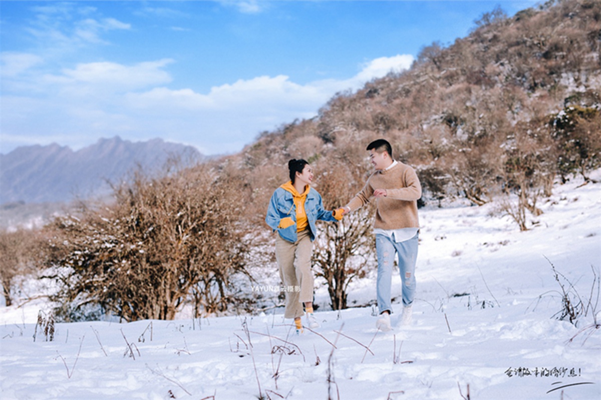 在南(nán)方是很難得(de)下雪的,即使是下了,也是清晨地面蒙上的一層淺白(bái),在被窩裡(lǐ)稍微遲疑,再起來(lái)看(kàn)就(jiù)已經消融無痕。從(cóng)來(lái)沒見(jiàn)過那樣描述中的雪花漫天、霜凍結枝,似乎人(rén)生(shēng)中就(jiù)缺少了一些浪漫。在九鼎山(shān),這裡(lǐ),該有的冬季浪漫,都(dōu)有了。|成都(dōu)婚紗攝影(yǐng)